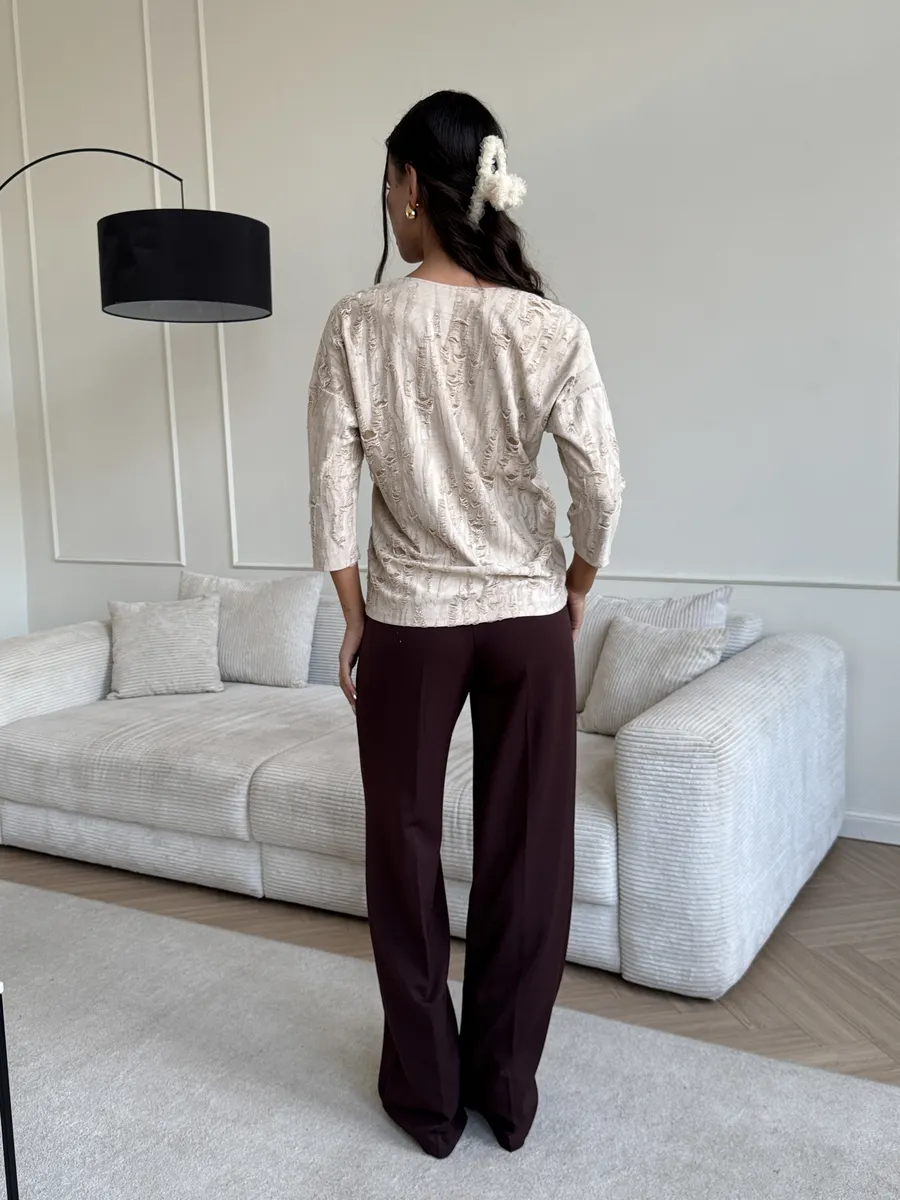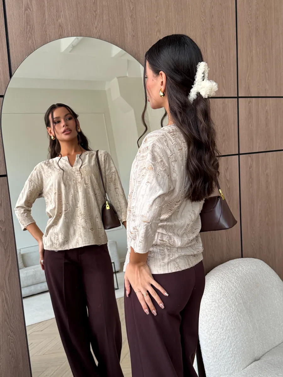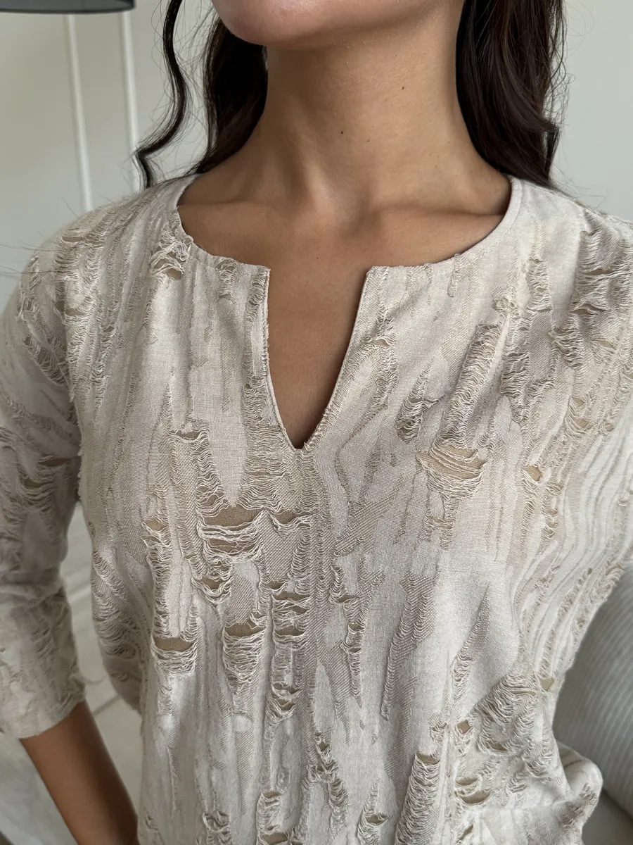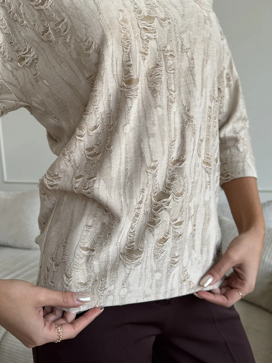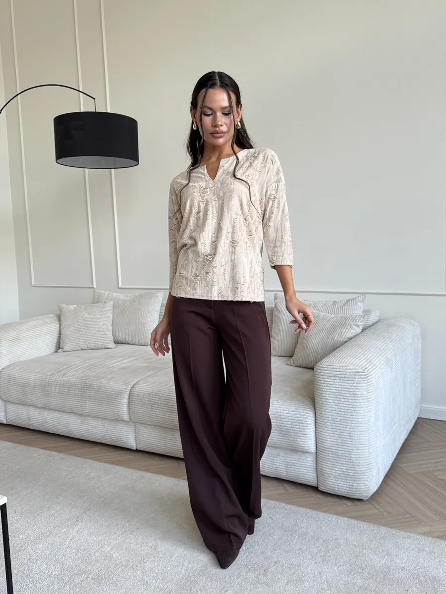 Теплая блузка очень приятна к телу, нежная текстура обеспечивает комфорт в течение всего дня. Торжественно смотрится за счет фантазийного рисунка ткани, который придает Вашему образу женственности.