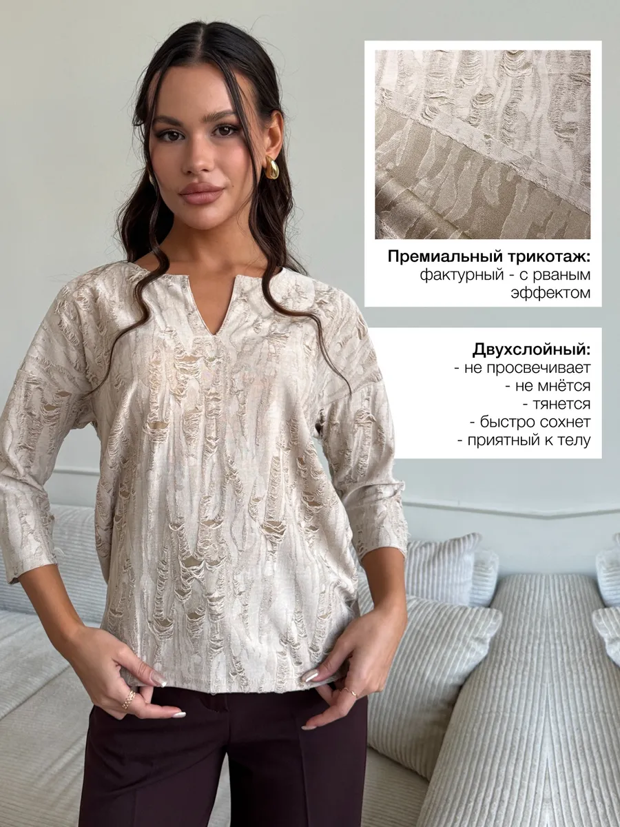 Та самая блузка женская – нарядная, из фактурного двухслойного трикотажа - тренд 2026. Отличный выбор для зимнего и весеннего сезона 2026 года. Легкая кофта женская имеет продуманный облегающий крой, благодаря которому блузка офисная хорошо сидит на фигуре, подчеркивая достоинства. Стильная красивая кофточка комфортно сидит как на высоких, так и на невысоких девушках.