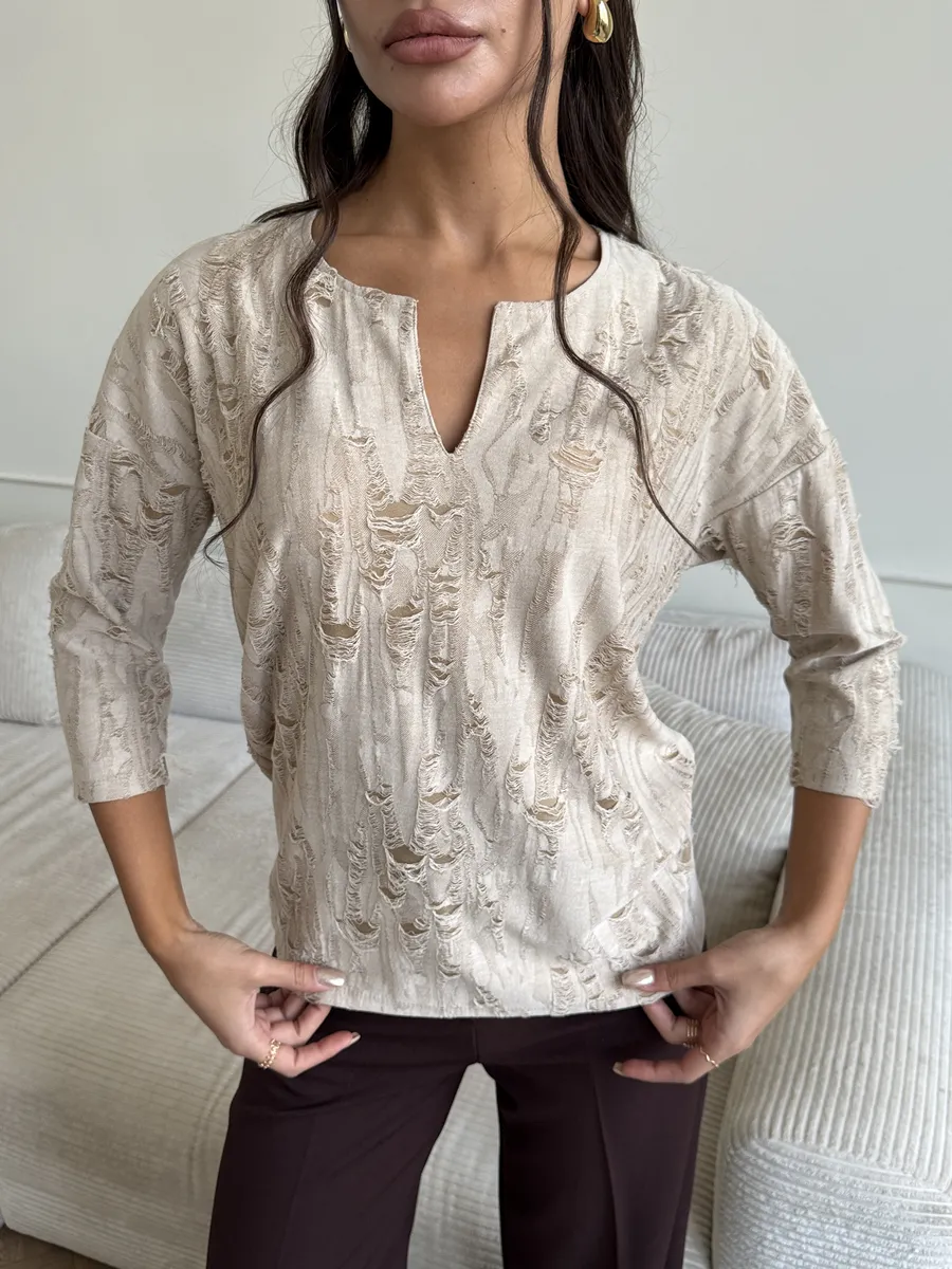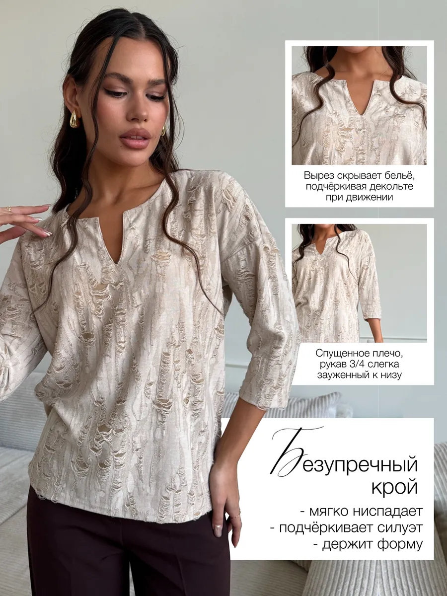 Изделие с фантазийным дизайном ткани – отличный подарок. Праздничная, модная станет великолепным дополнением к вашему образу на Новый год, 14 февраля или 8 Марта, добавляя в него нотки элегантности и шарма. Этот лонгслив с рукавом три четверти идеален для офиса. Представлена в различных актуальных цветах, что позволяет легко подобрать вариант под любой стиль и предпочтения.