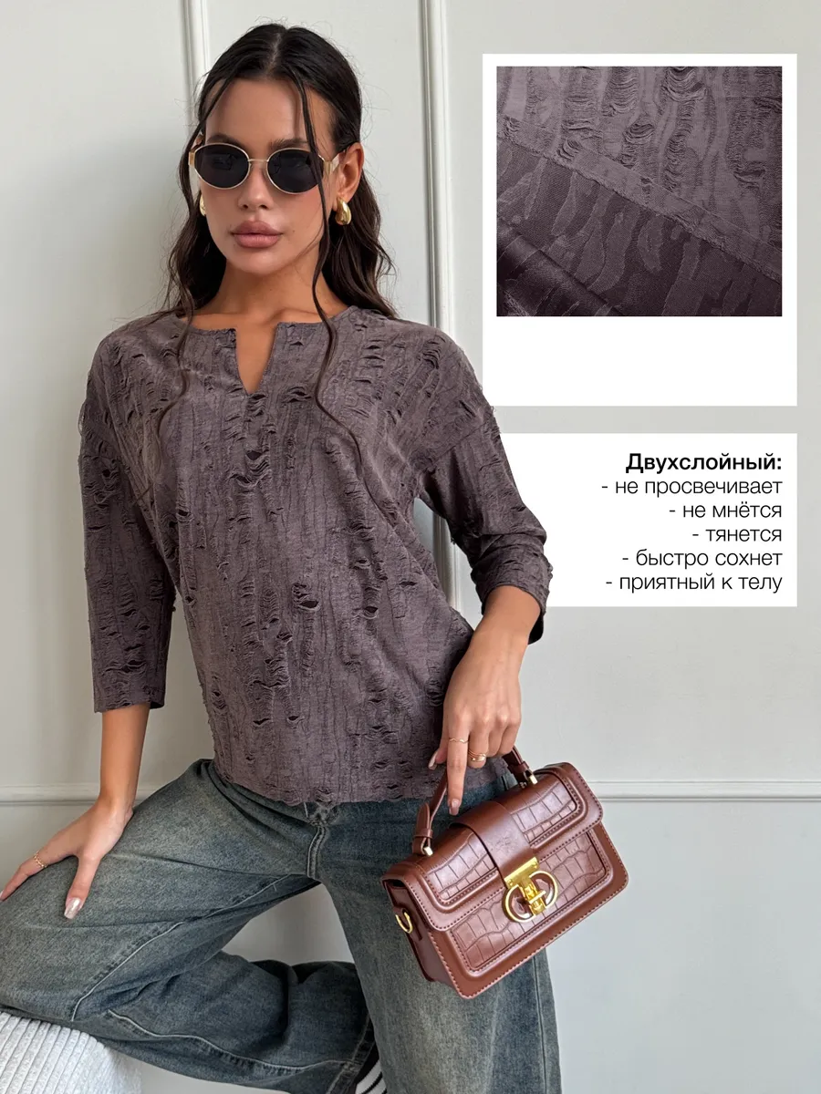 Изделие с фантазийным дизайном ткани – отличный подарок. Праздничная, модная станет великолепным дополнением к вашему образу на Новый год, 14 февраля или 8 Марта, добавляя в него нотки элегантности и шарма. Этот лонгслив с рукавом три четверти идеален для офиса. Представлена в различных актуальных цветах, что позволяет легко подобрать вариант под любой стиль и предпочтения.