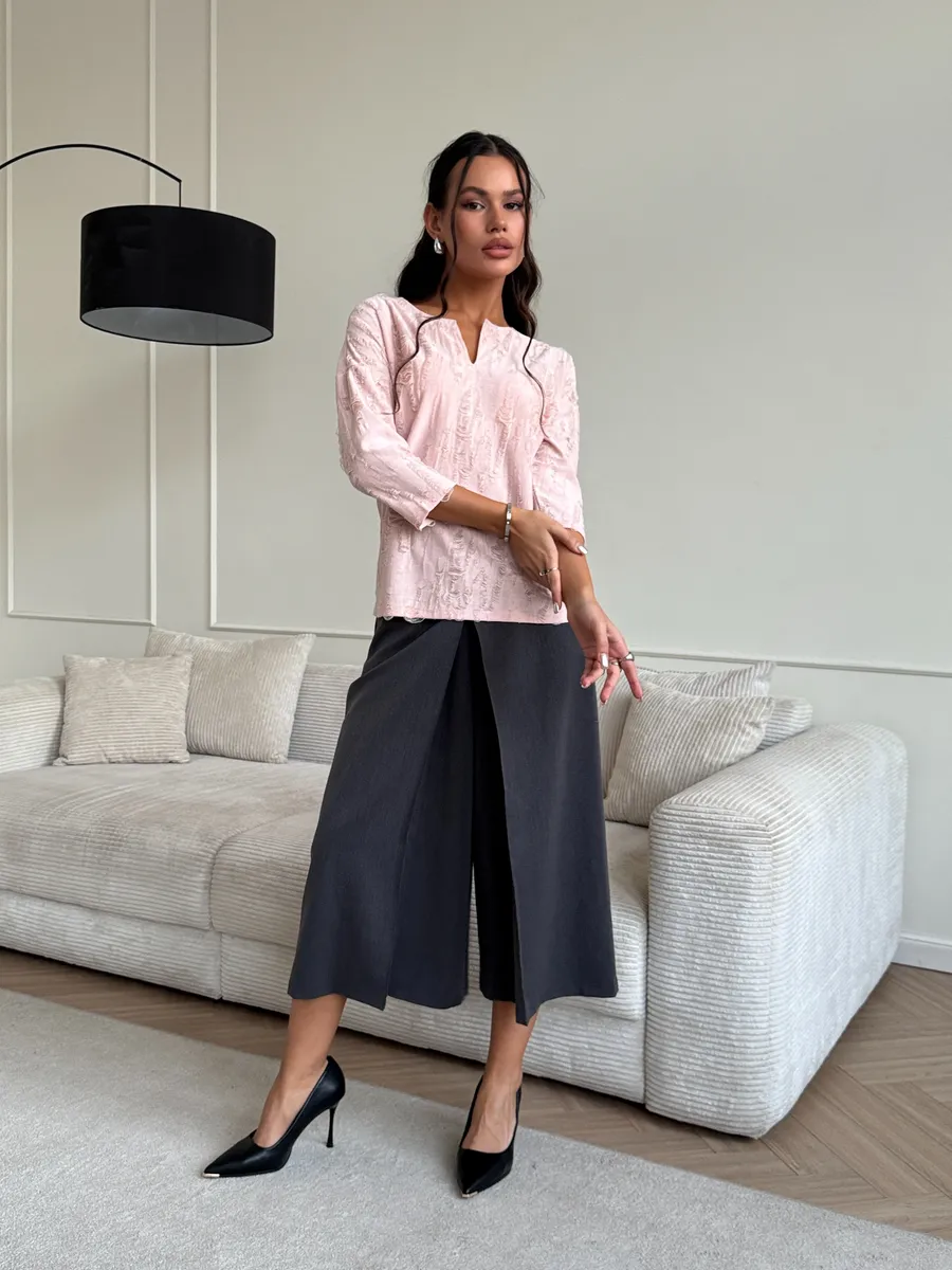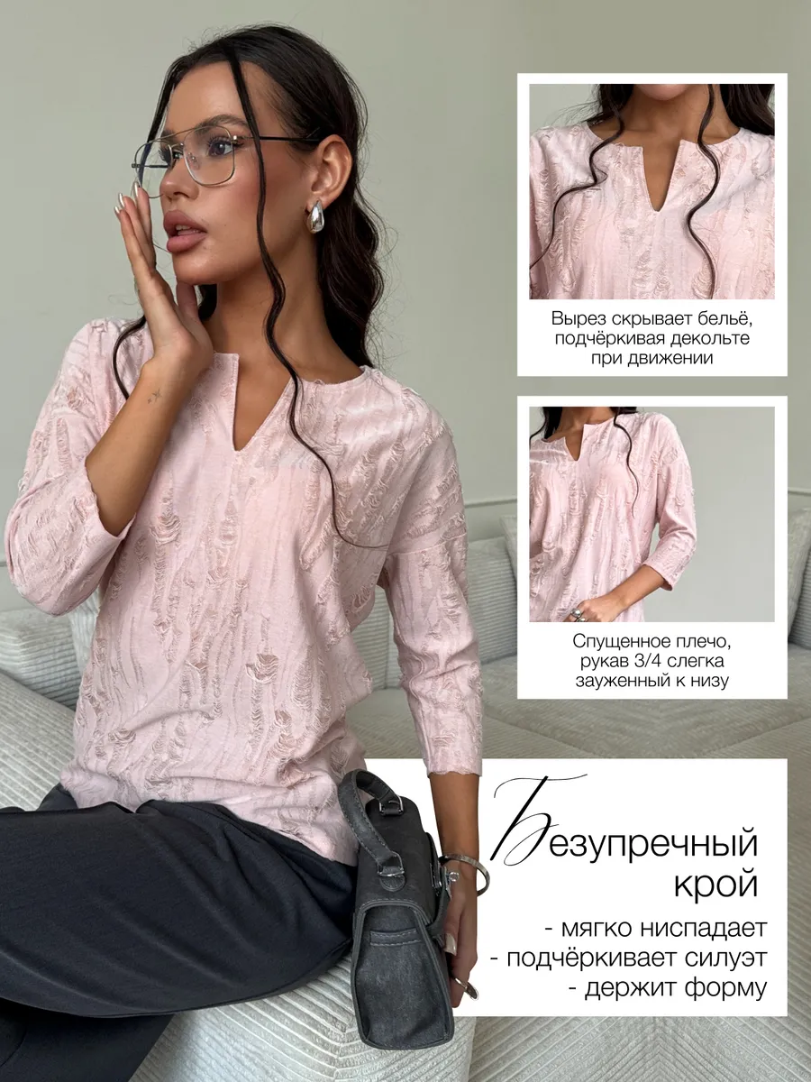 Та самая блузка женская – нарядная, из фактурного двухслойного трикотажа - тренд 2026. Отличный выбор для зимнего и весеннего сезона 2026 года. Легкая кофта женская имеет продуманный облегающий крой, благодаря которому блузка офисная хорошо сидит на фигуре, подчеркивая достоинства. Стильная красивая кофточка комфортно сидит как на высоких, так и на невысоких девушках.