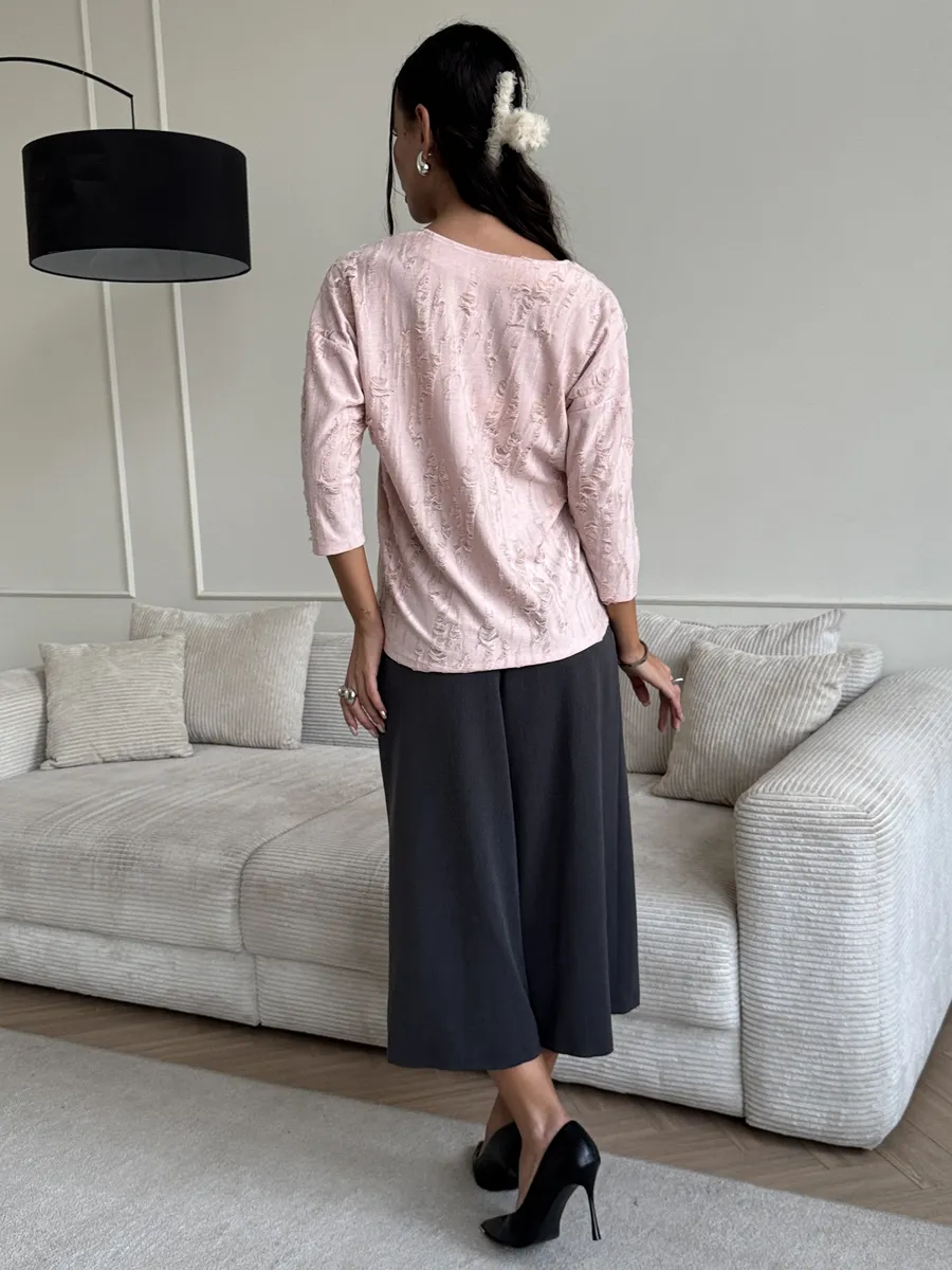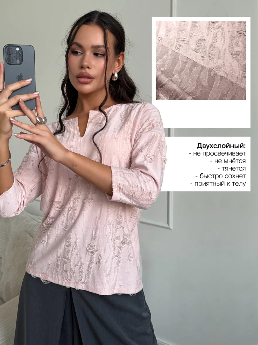 Изделие с фантазийным дизайном ткани – отличный подарок. Праздничная, модная станет великолепным дополнением к вашему образу на Новый год, 14 февраля или 8 Марта, добавляя в него нотки элегантности и шарма. Этот лонгслив с рукавом три четверти идеален для офиса. Представлена в различных актуальных цветах, что позволяет легко подобрать вариант под любой стиль и предпочтения.