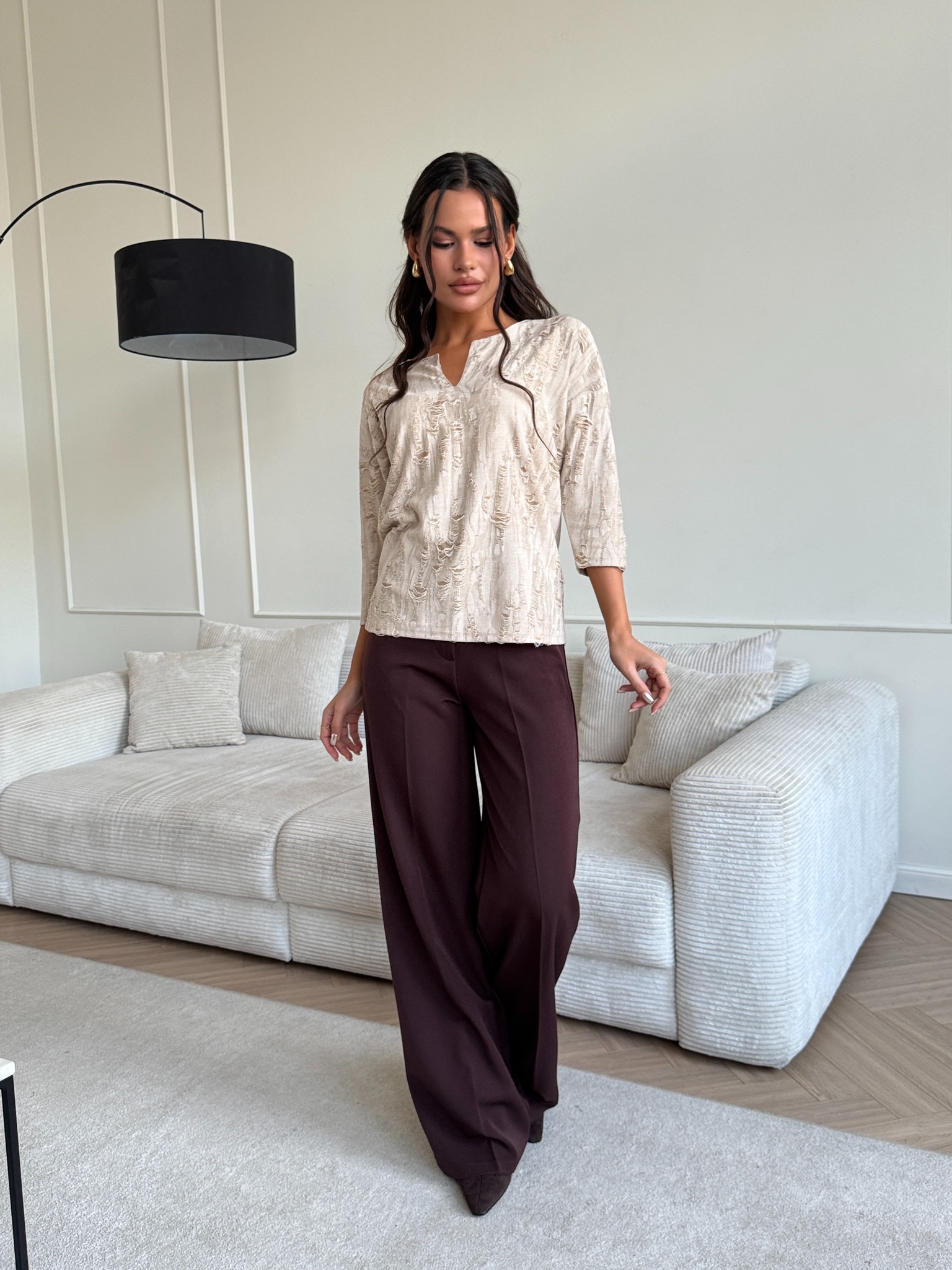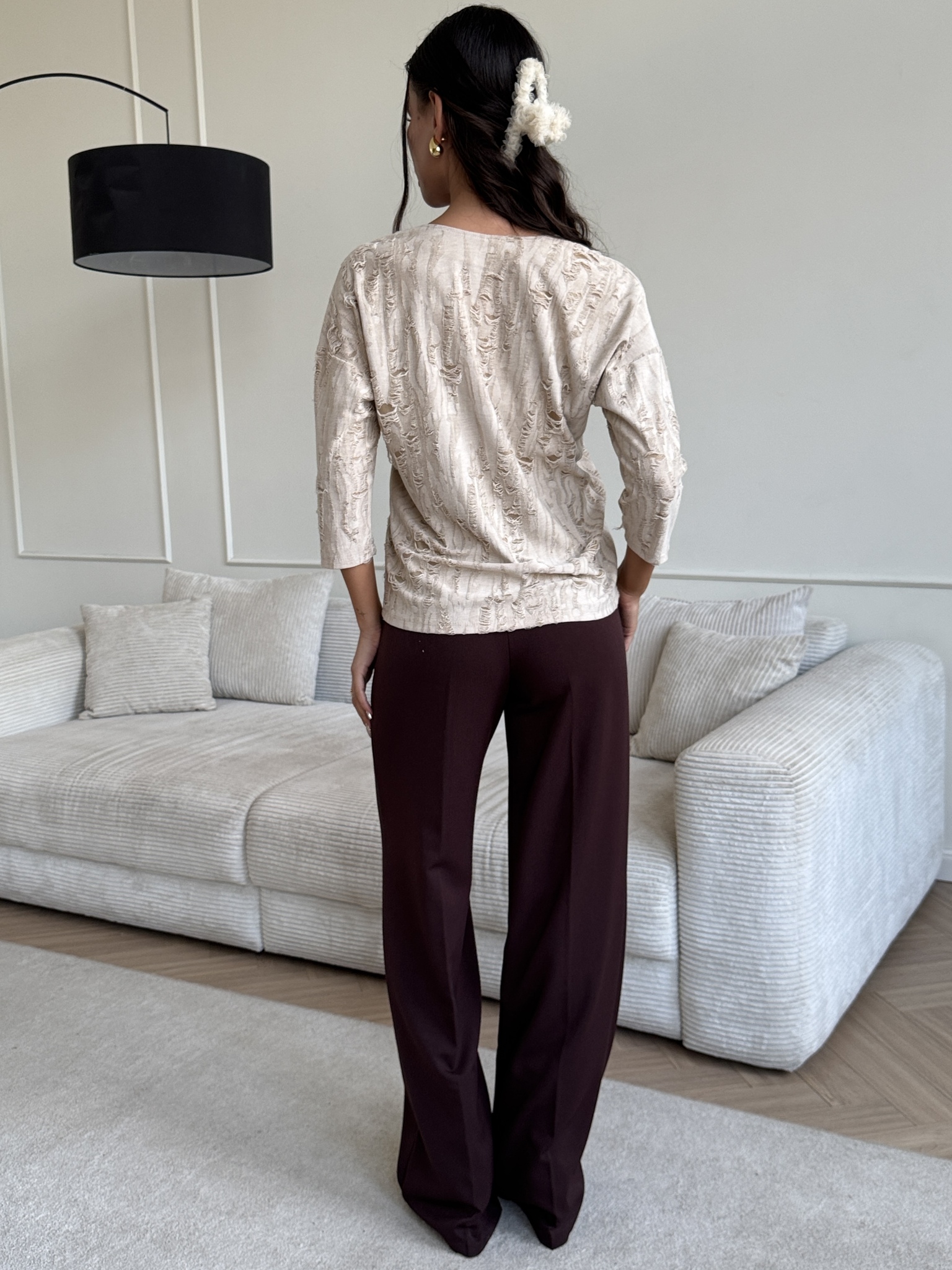 Стильный базовый лонгслив UVOSTORE (произведено в Москве) из приятного к коже премиального турецкого трикотажа с выразительной фактурой и «рваным» эффектом — это именно декоративная текстура, без дырок. Свободный силуэт и рукав 3/4 обеспечивают комфорт и лёгкость движений, круглая горловина с аккуратным разрезом визуально вытягивает шею.