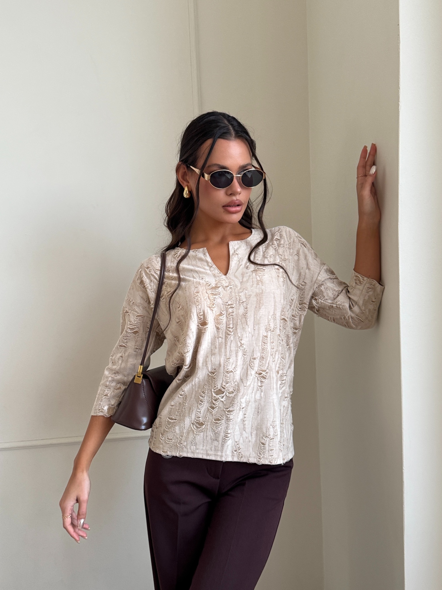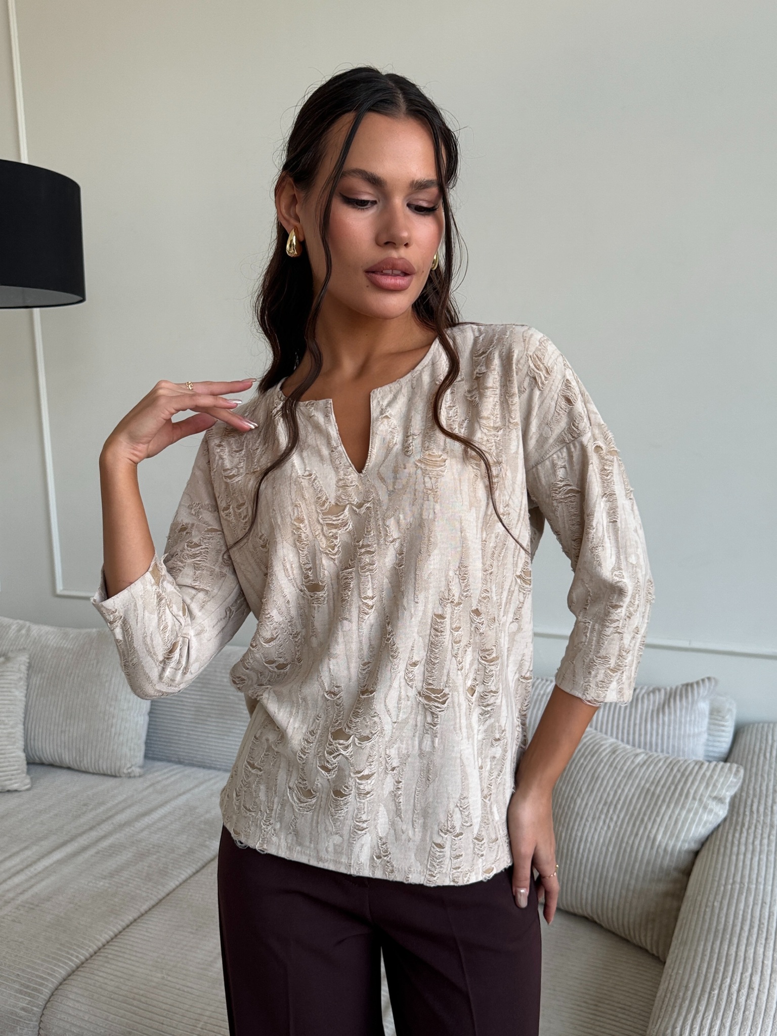 Лонгслив женский с рваным эффектом, свободный крой, рукав 3/4