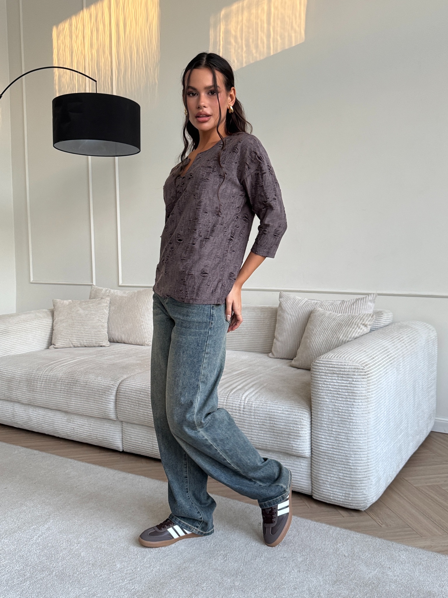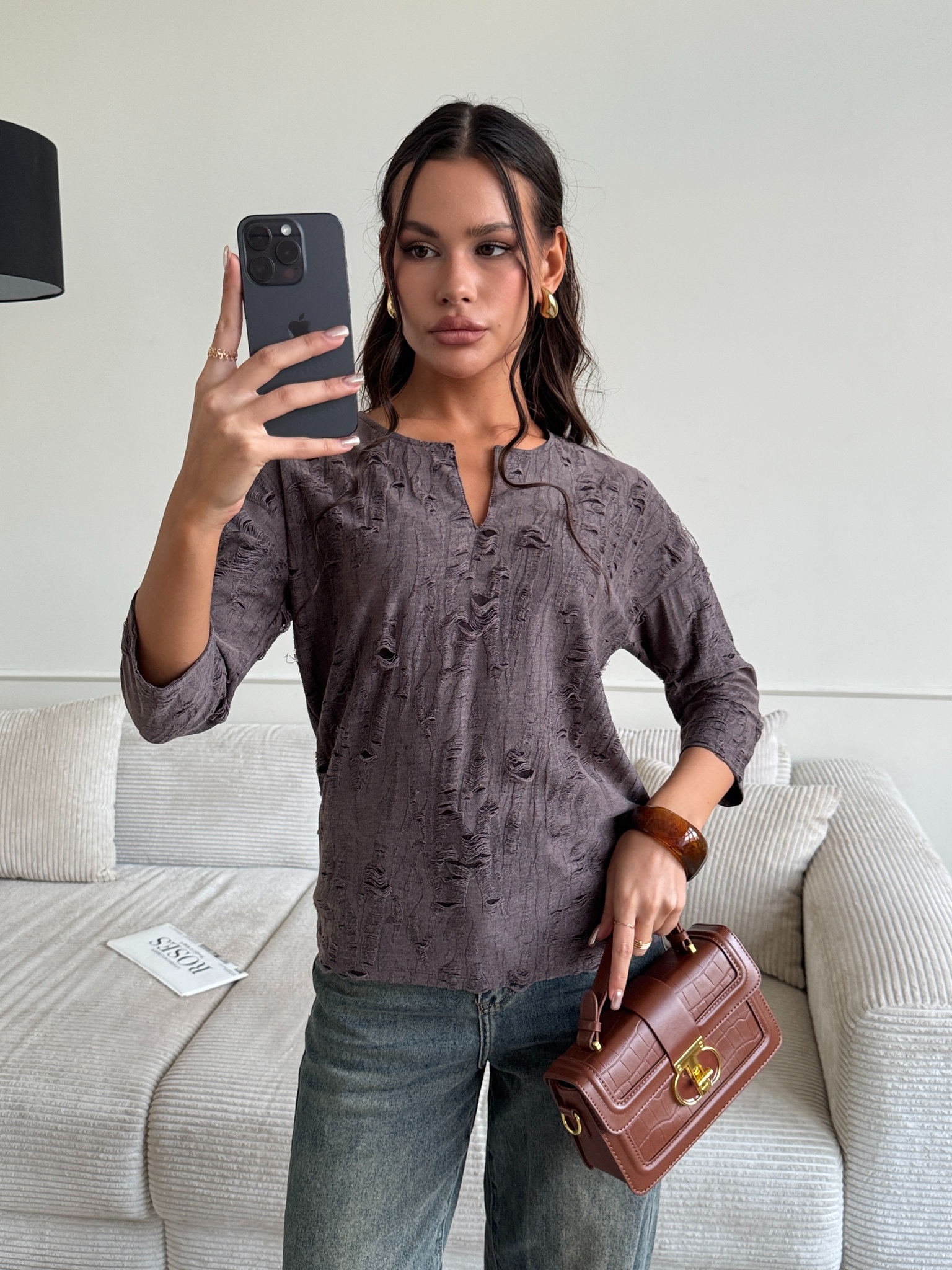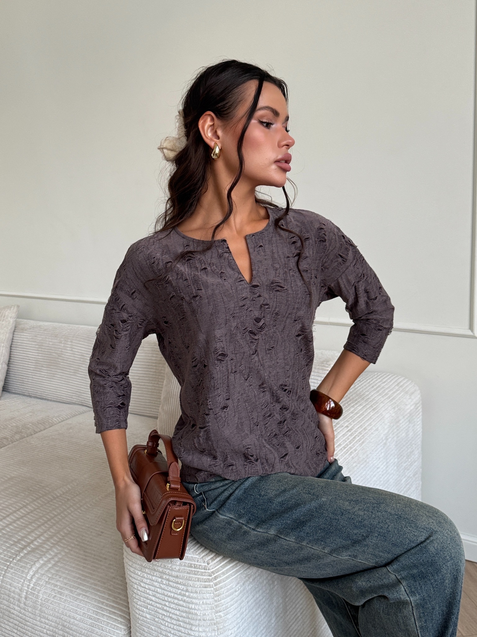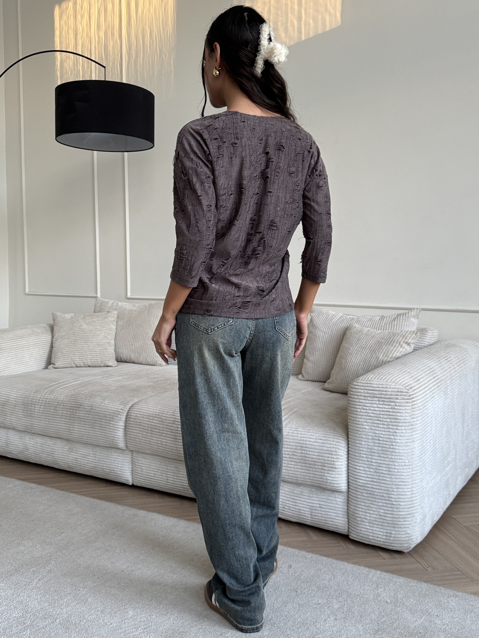 Лонгслив женский с рваным эффектом, свободный крой, рукав 3/4