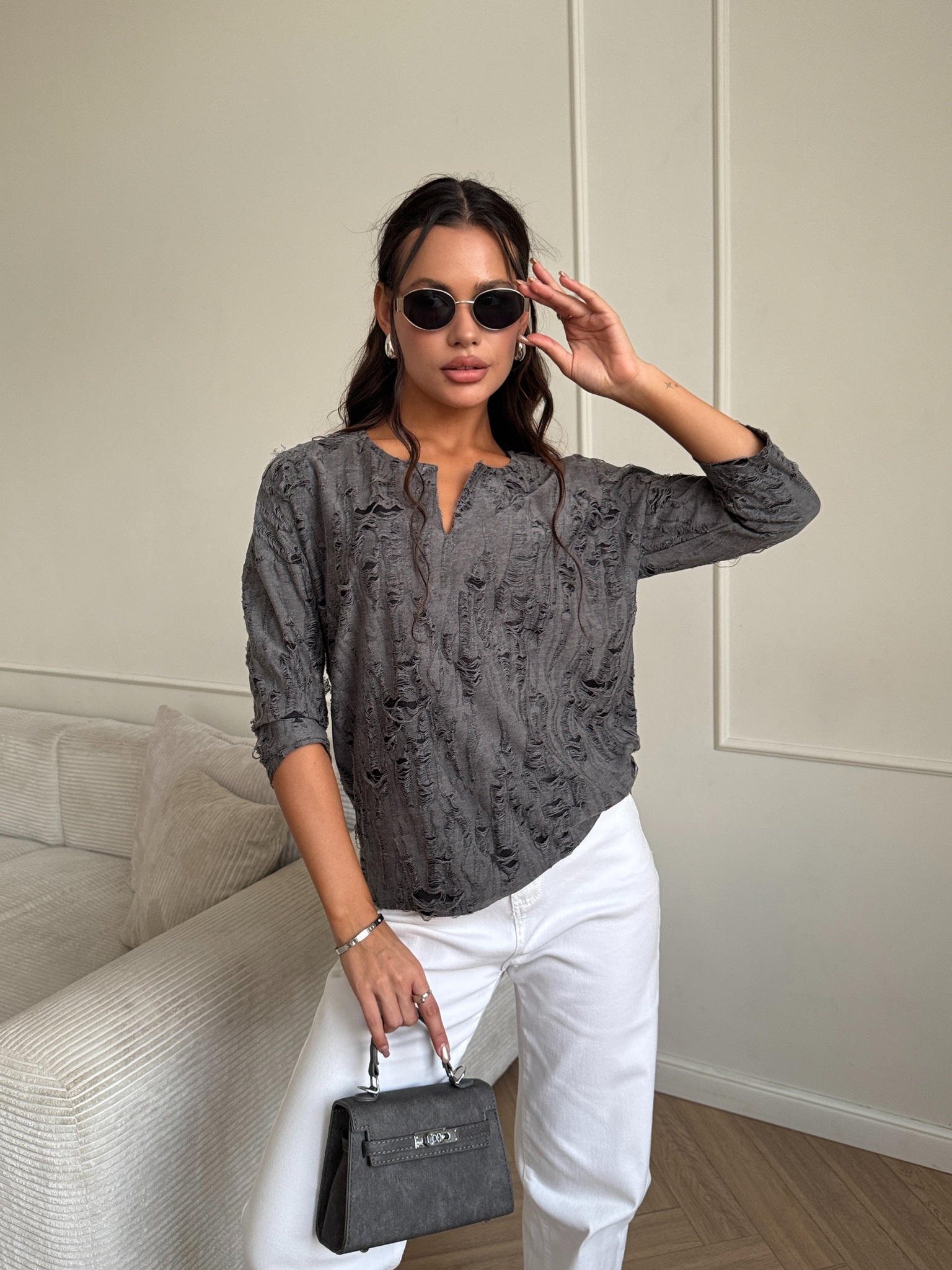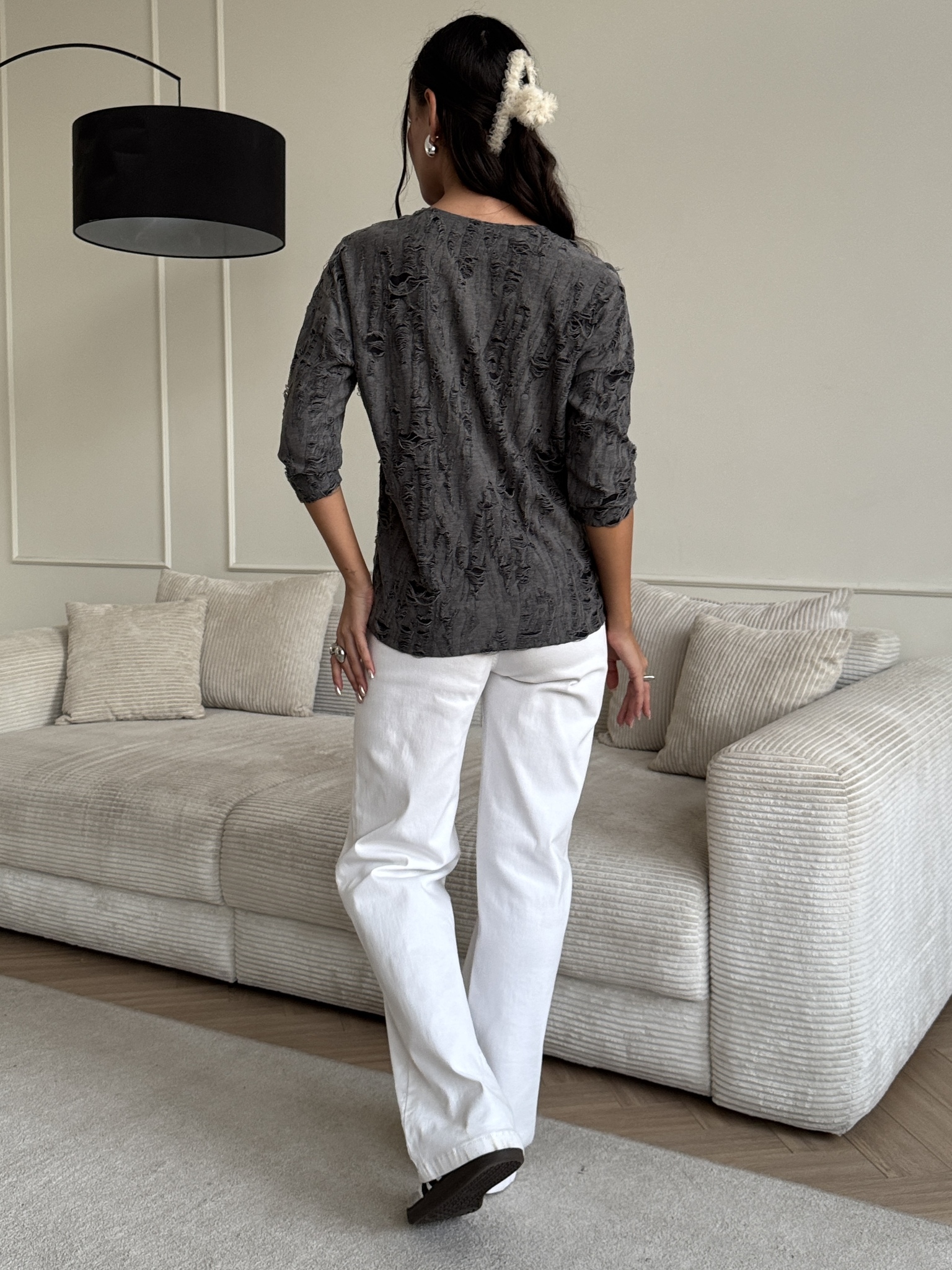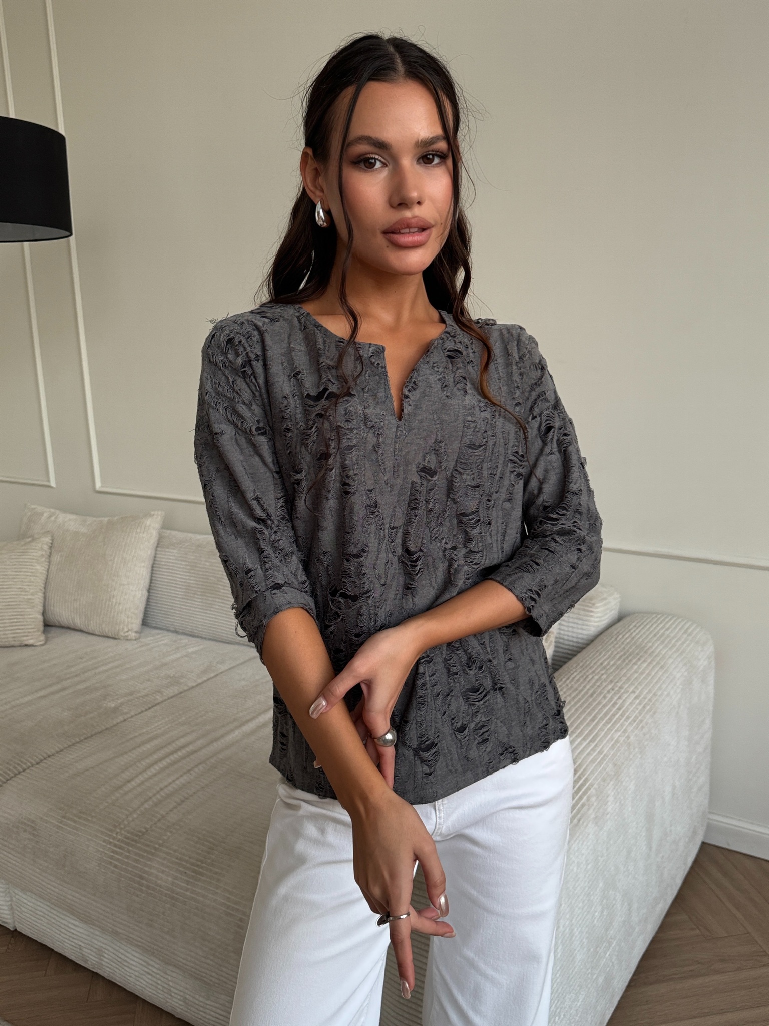 Лонгслив женский с рваным эффектом, свободный крой, рукав 3/4