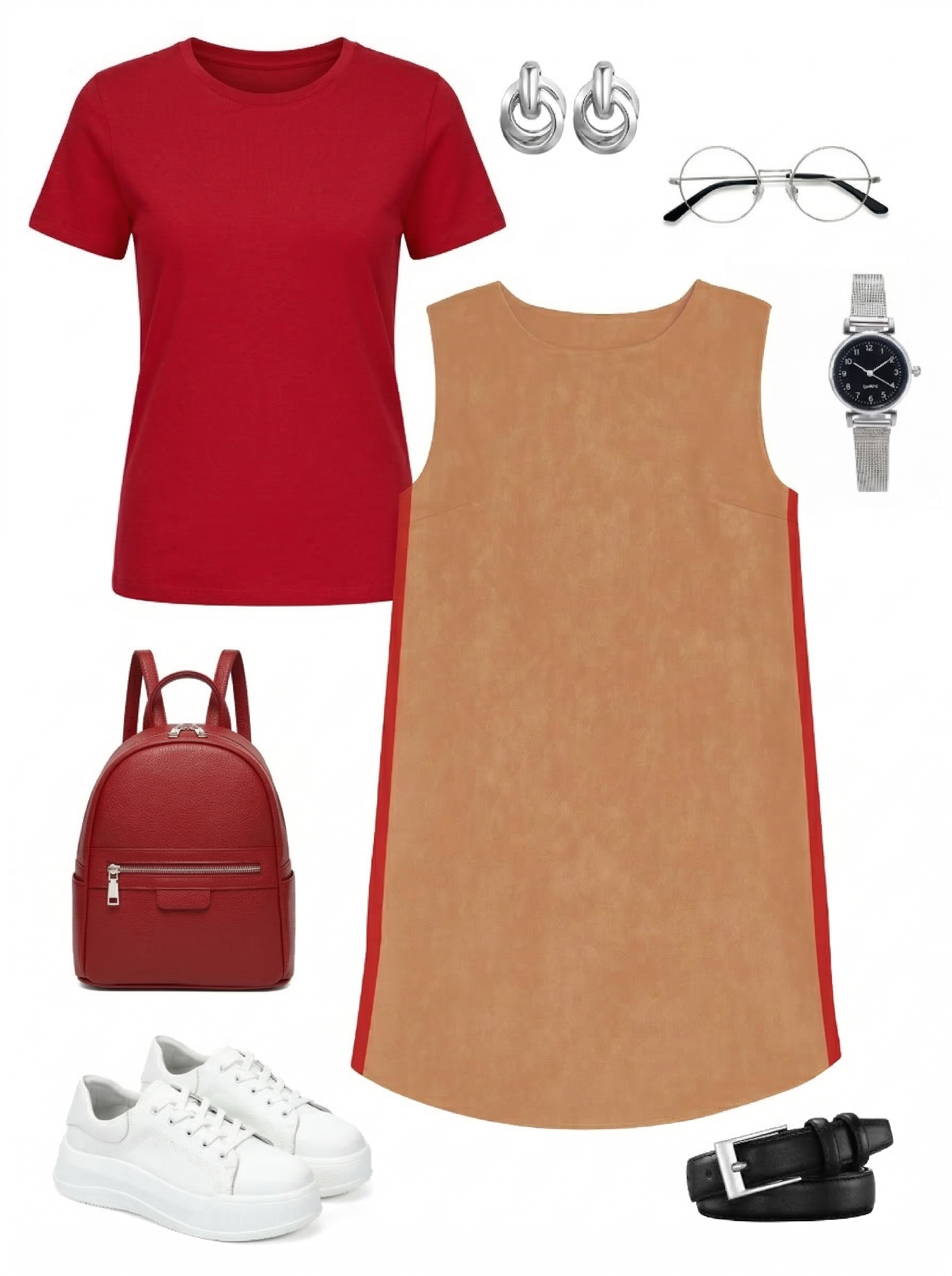 Эта модель подойдет тем, кто ищет бежевое женское платье без рукавов, бежевый сарафан или платье-сарафан с красными вставками. Платье помогает создать аккуратный и выразительный образ без лишней перегруженности и хорошо вписывается как в деловой, так и в повседневный гардероб.