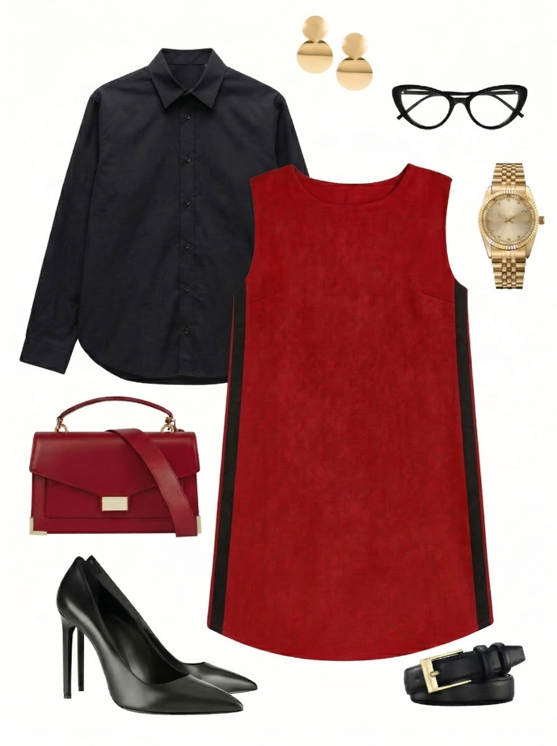 Эта модель подойдет тем, кто ищет красное женское платье без рукавов, красный сарафан или платье-сарафан с черными вставками. Платье помогает создать выразительный и аккуратный образ без лишней перегруженности и хорошо вписывается как в деловой, так и в повседневный гардероб.