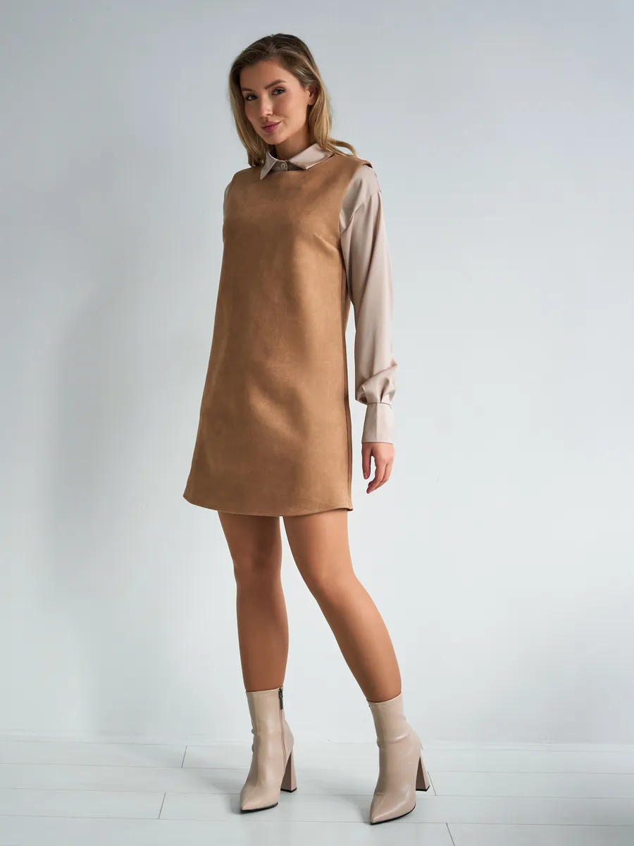 Платье сарафан офисное замшевое А силуэт