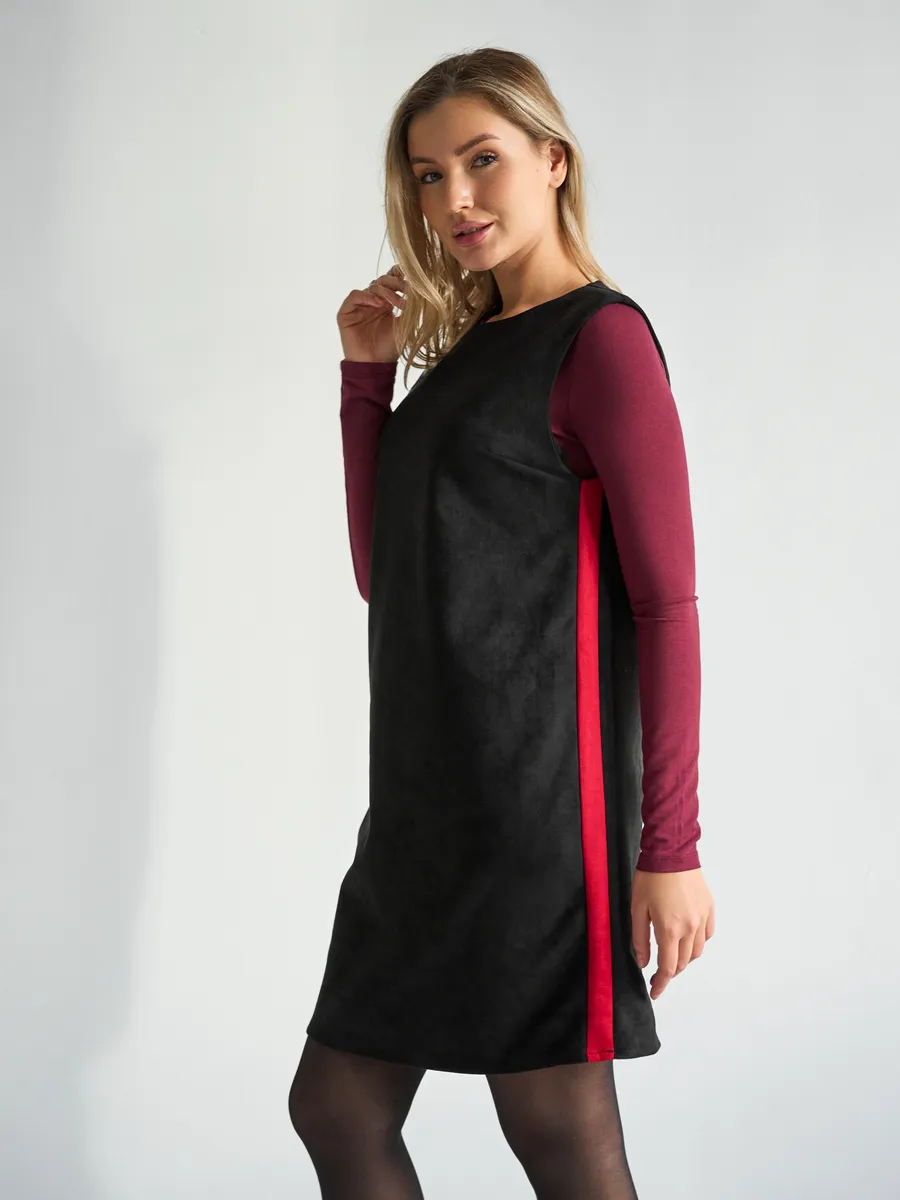 Сарафан офисный можно носить соло как классическое лаконичное платье или сочетать с футболками, водолазками, рубашками и пиджаками для создания многослойных образов. Если нужно подчеркнуть талию, силуэт легко изменить ремнём — образ становится более женственным и выразительным. В тёплом замшевом сарафане комфортно в холодное время года. Искусственная замша приятна к телу и хорошо держит форму, ткань слегка тянется, благодаря чему изделие удобно надевать, снимать и носить весь день. Будьте неотразимы каждый день!