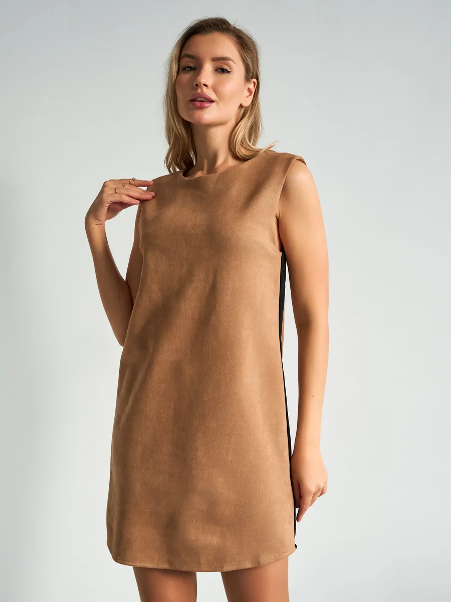 Платье сарафан офисное замшевое А силуэт с лампасами